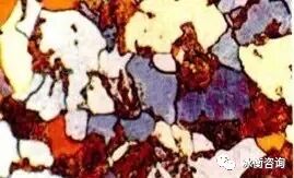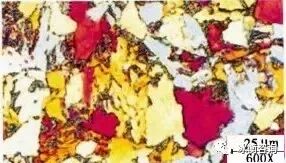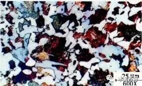 组织:浅棕色珠光体灰褐色、铁素体红、黄、蓝色